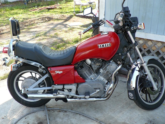 a phone call to a guy in Tampa who was looking to get rid of his old motorcycle. I picked it up for about a thousand dollars. Well worth it I think. She is a 920 Yamaha cruiser and runs great. The bike is an ’82 and loud as hell; I like that because the old people can hear me coming. “Well I hope they can hear me coming.” I drove it to my dads last week and that was one scary ride because I’m still trying to get used to riding a real bike and not a scooter. There is such a weight and balance difference that it may take some time to get a handle on it. Jackie “my lover” asks almost everyday to take her for a ride on it and I feel bad that I’m not quite ready to have anyone on the back of it yet. So for now I ride alone. I don’t get to ride it that much so it’s going to take longer to learn to ride it better.