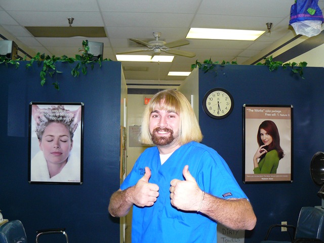 I wanted to be a smart ass and ask if I could get an oil change, but I asked if the girl could make me look professional in just one sitting, she laughed and said it would be no problem. I then asked if she could make me looks like my teacher before cutting all my hair of my warm head. The hairdresser laughed and promptly agreed, she said it had been slow all day and that I was her first client of the day, so she would be happy to make my hair look any way I wanted just so she wasn’t bored. Melissa washed my hair then started cutting; the first cuts she made was to give me bangs, holy hell how that killed me having bangs for like a half hour while she cut the rest to length and styled it to look like Ms Calvert’s. I got the picture I wanted and it looks terrible, in a great way though. Needless to say I got the rest of my hair chopped off and emailed the teacher my funny picture. I still wish my hair was long and I think I will miss it for some time to come. There has been a few people who did not recognize me at all, they would see me talking to people in the class and wonder who I was till it finally clicked and they shout out holy crap that’s Mike!, Lol, which was some funny crap. lol.