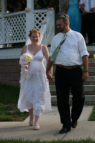 I cannot believe it; finally after all these years someone has actually gotten me to settle down and I am now married to the greatest woman ever. This past weekend went by so fast it seems like it didn’t even happen. Friday I went to work and got two leads, and when I got home Jonny Surburban was waiting for me to take us to Bells Outlet for pants and under shirts. John Mac met us there and we all found the last few things we need for the wedding as far as clothing went. It was cool hanging out with them and doing the shopping thing (not having a girl there made it a quick trip because we could just grab what looked good and get the heck out of there.) We hung out in the Bells parking lot for like a half hour or so just talking about the good old days and how much trouble we could have gotten into back then. John headed home and Jonny and I met my stepdad up at the Wing House for dinner and a few drinks. My last night of freedom was spent eating a blackened chicken salad and hanging out with the two people I can generally count on the most. Rich spent most of the night telling our blond haired waitress horribly mean blonde jokes. Okay well she laughed at most of them; later on though she told him to start telling her brunet jokes since she wasn’t enjoying the blonde ones anymore. Just before close we headed out, Rich went home and Jonny and I went to Sail Inn for a few more drinks. Well they were my first drinks since I didn’t drink at Wing House. Thank you Rich for dinner. Jonny and I didn’t stay at the bar very long because of how close it was to two o’clock. Jonny was trashed tough by the time we got home.